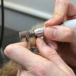 Что делаем мы: Находим «живую» пульпу, безопасно укорачиваем коготь и финально подпиливаем, убирая все заусенцы и расслоения. Идеально гладкий край — гарантия, что собака не поцарапает ни себя, ни вас, ни пол, а коготь не будет цепляться за ткань и напольные покрытия.